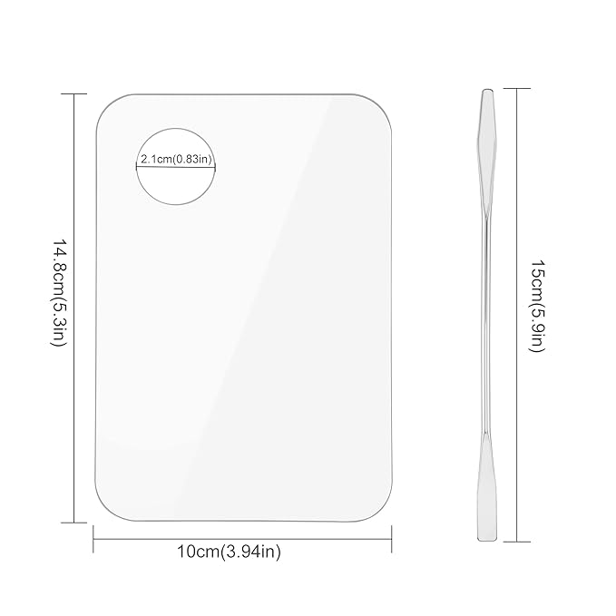 - Acrylic Material: Foundation mixing tray is acrylic material. Clear color display, beautiful, direct color comparison. Friction-resistant, non-cracking, non-breakable, easy to clean, and durable. The spatula is a double-ended design made of high-quality 410 stainless steel, super sturdy