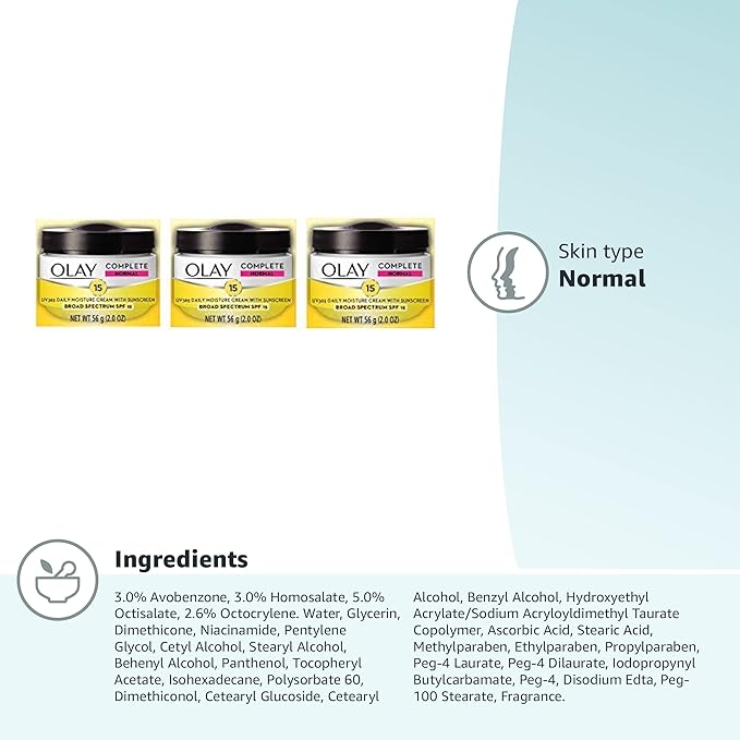 Olay Face Moisturizer Complete All Day UV Moisture Cream with Sunscreen SPF 15, Normal Skin, 2 Fl Oz (Pack of 3)