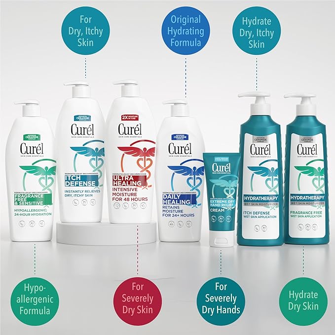 Curel Daily Healing Body Lotion for Dry Skin, Dermatologist Recommended Hydrating Body Lotion with Advanced Ceramides Complex, 20 Oz