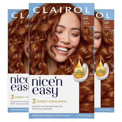 - Clairol Nice'n Easy 6R Light Auburn. Permanent natural looking color with 100% gray coverage.