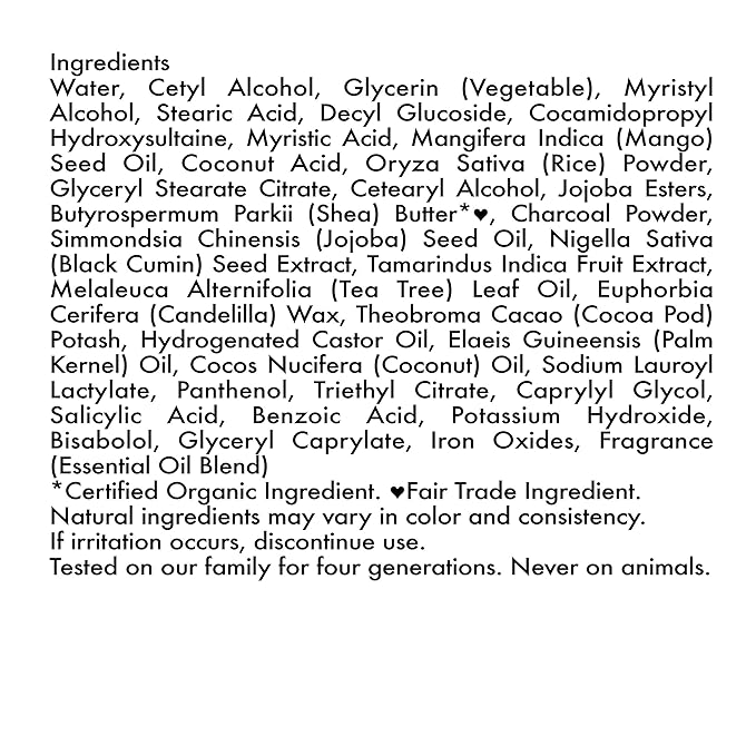 - Made with African Black Soap, Bamboo Charcoal and Tea Tree Oil