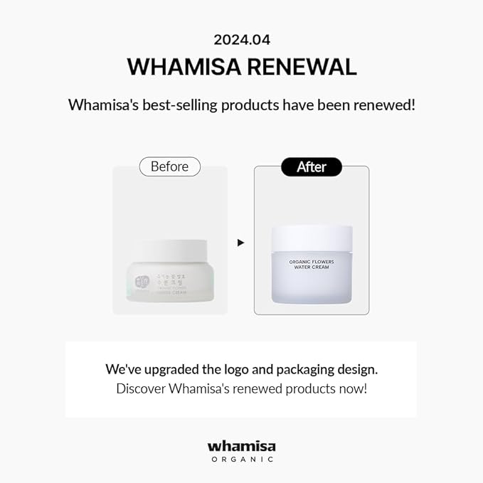 Whamisa Organic Flowers Water Cream, 95.2% Organic, Waterless Formula, Fermented Postbiotic for Deep Hydration & Soothing, Moisturizing (50ml)