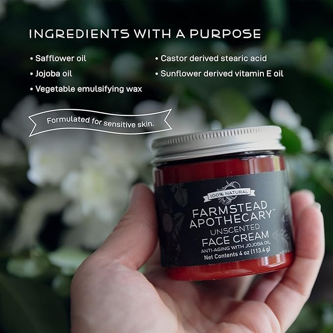 Farmstead Apothecary 100% Natural Anti-Aging Face Cream with Jojoba Oil, 4 oz (Unscented)