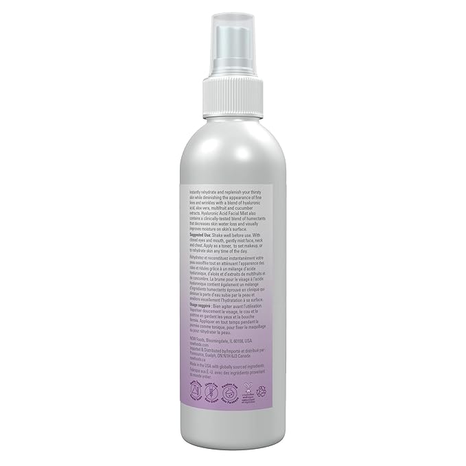 NOW Foods Solutions, Hyaluronic Acid Hydration Facial Mist with Aloe Vera and Cucumber Extracts, 4-Ounce