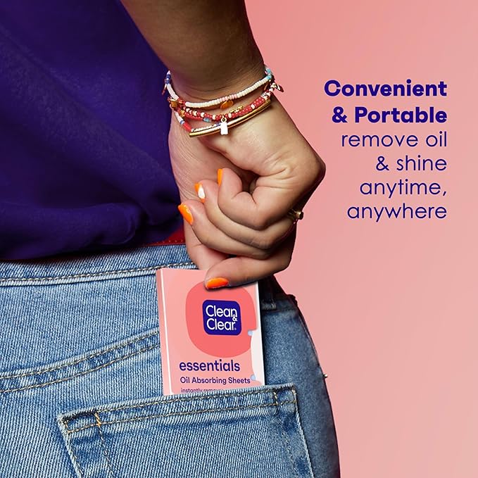 - Value pack of Three 50-count package of Clean & Clear Essentials Oil Absorbing Facial Blotting Sheets to instantly soak up excess oil, plus, to reduce and remove shine from your face and nose