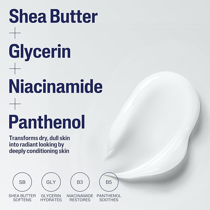 - DERMATOLOGIST BACKED INGREDIENT BLEND: With hydrating glycerin and skin essential vitamins B5 (panthenol) and B3 (niacinamide)