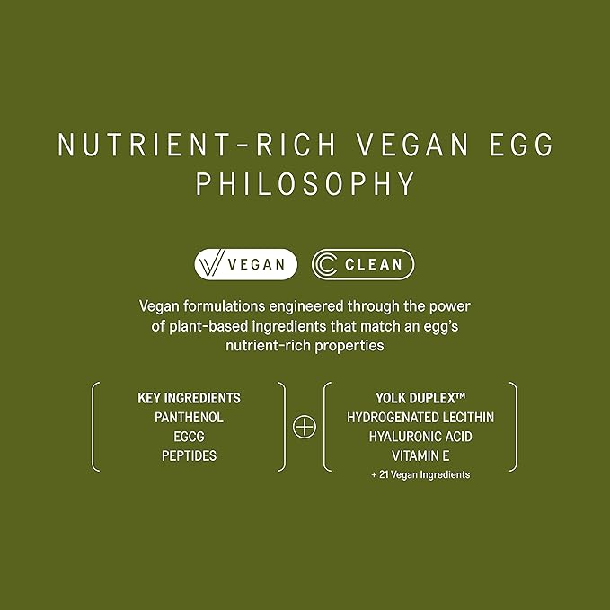 - YOLK DUPLEX (Egg Yolk Duplicated Complex) – Engineered through innovative technology to duplicate vital egg yolk nutrients with 24 high-grade vegan ingredients, including Lecithin, Vitamin E, Chicory Root, Amino Acids, Fatty Acids, and Minerals.
