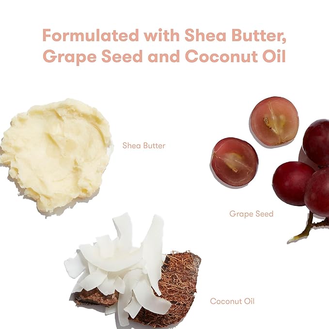- COCOCNUT OIL, SHEA BUTTER + GRAPESEED: Gentle emollients that keep moisture on lock and strengthen the skin’s natural barrier
