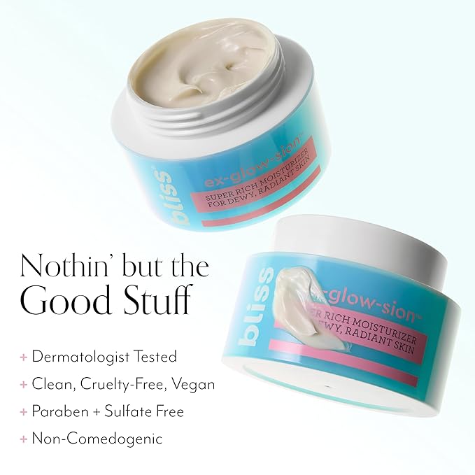 Bliss Ex-glow-sion Super Rich Face Moisturizer for Dewy, Radiant Skin | Advanced Shea Butter Nourishes & Hydrates | 100% Vegan and Cruelty-Free | 1.7 fl oz