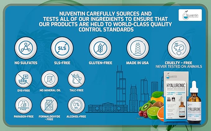 - WRINKLE REDUCER – Are wrinkles, fine lines, and dry skin making you conscious about how you look? Revive the firm, glowing, and gorgeous skin from your youth with Nuventin Hyaluronic Acid Facial Serum! Hyaluronic Acid brightens, plumps, and lifts sagging skin.