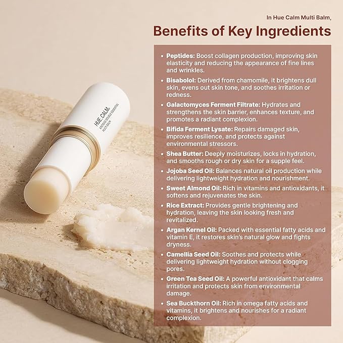 Korean Skincare Multi Balm – Hue Calm Kintsugi Double Essential Balm | Vegan Anti-Aging, Brightening & Hydrating Stick with Shea Butter & Peptides