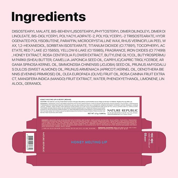 Nature Republic HONEY MELTING LIP (03 BERRY) SOFT LIP STICK, Hydrating Gloss, Moisturizing balms, Sheer tint, Shine & Glowy Finish, korean make up
