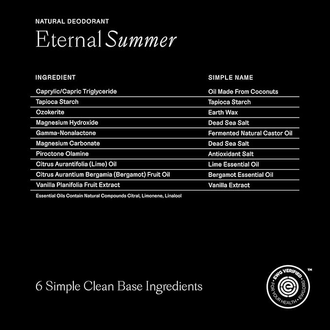 - Simple Ingredients That Work - We believe each and every ingredient matters. That's why we partner with individual farmers and distillers to ensure quality, safety and transparency in each all natural deodorant.