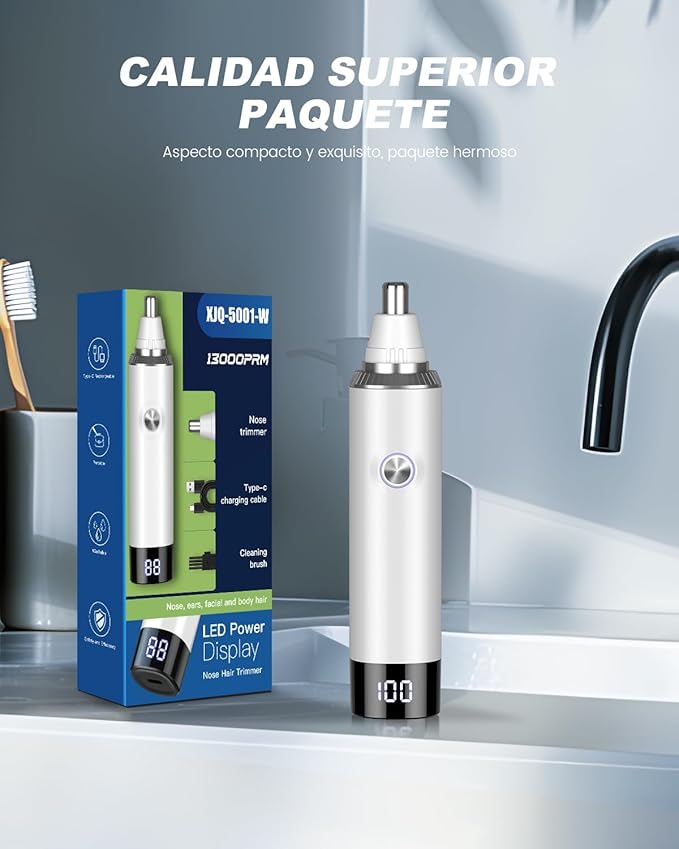 - Newly Upgraded Digital Display: The nose hair trimmer comes with a digital LED display, allowing users to easily monitor the battery level, eliminating the worry of the battery running out during use. Its professional noise reduction design ensures noise levels are lower than the buzzing of a bee, considerate of the user’s environment, and avoids disturbing family members' sleep.