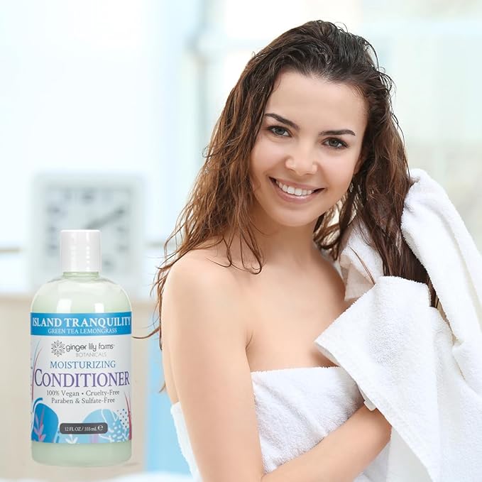 Ginger Lily Farms Botanicals Moisturizing Conditioner for Dry Hair, Island Tranquility, 100% Vegan & Cruelty-Free, Green Tea Lemongrass Scent, 12 Fl Oz