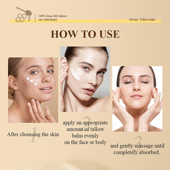- 【 Premium Ingredients 】 Crafted from organic, grass-fed beef tallow and raw wild honey, this skin balm offers a blend of high-quality, responsibly sourced ingredients for optimal skincare.