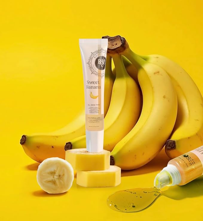 ROSÉE & CO Rosee Lip Gloss Vegan & Cruelty Free Treatment, Professional Make up, Long Lasting Glossy with Shea Butter, Moisturize, Protect & Smooth, High Shine, Non-Sticky (s. Sweet Banana, 0.5)