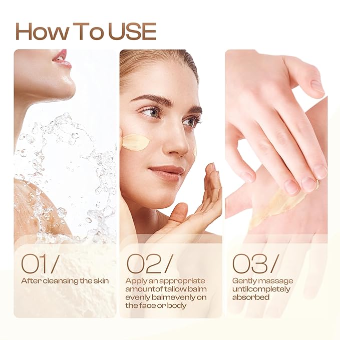 - Multiple Uses: Not only does our pure whipped tallow balm play an important role on the face, but if you use our tallow for skincare, you can see visible improvements. Tallow skincare products can also be used on the hands, legs, back, and other parts of the body to provide comprehensive hydration and hydration throughout the body