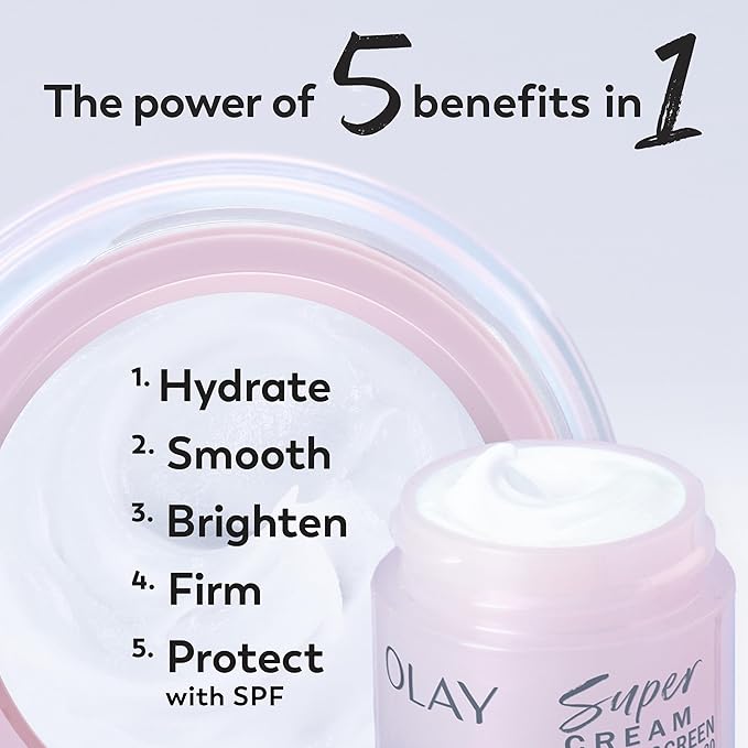 Olay Super Cream with Sunscreen SPF 30, 15 mL, Trial Size Ultra Lightweight Face Moisturizer - Vitamin C, Hyaluronic Acid, Niacinamide, Collagen Peptide - Hydrate, Smooth, Brighten, Firm, and Protect