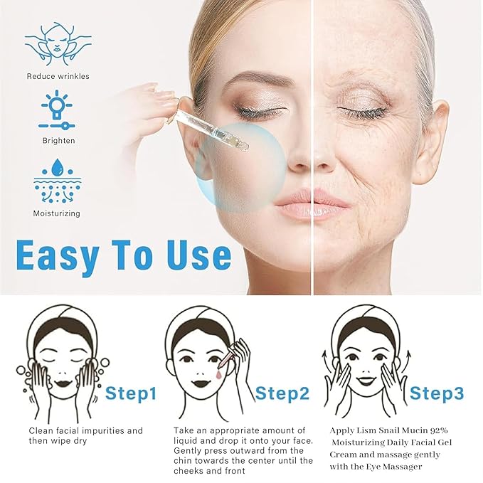 - Snail Mucin 92% Moisturizer: Contains 92% snail mucin,this cream builds a barrier to intense hydration, quench dryness, restore life to your skin's appearance