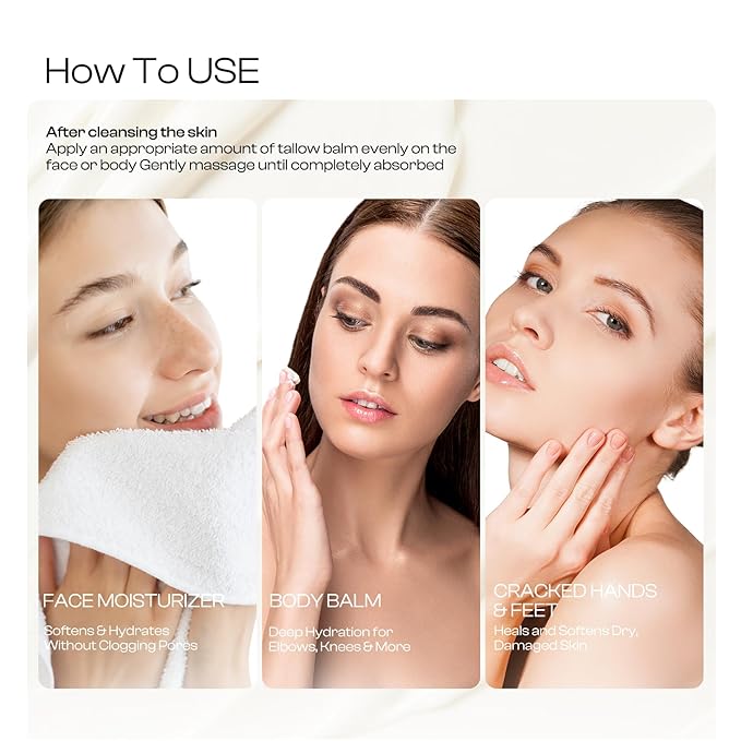 - Easy to Use: Just apply the tallow cream to dry skin, massage and absorb it. You can enjoy the moisturizing and hydrating treatment of tallow cream anytime, anywhere. It can be used day and night. The soft texture of the paste will be quickly absorbed by smooth skin