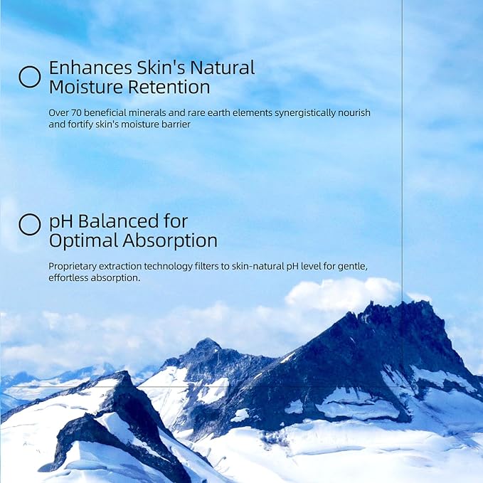 - This hydrating face mist features sodium hyaluronate (hyaluronic acid) and Columbia glacier mineral water, rich in over 70 beneficial minerals and trace elements. This facial mist spray hydration formula deeply hydrates without drying the skin.