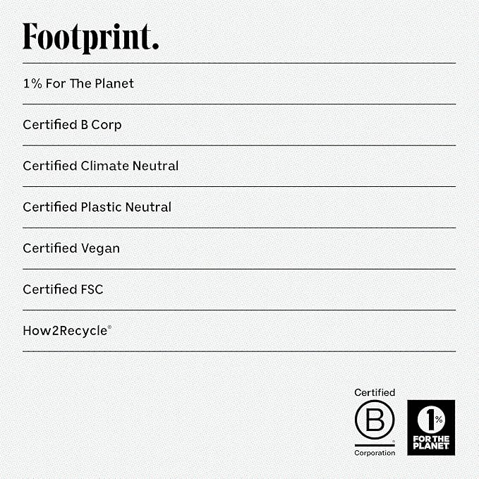 - FOOTPRINT: Bottle is non recyclable. Carton and insert are made with FSC-Certified, PCR Kraft Board and are recyclable. Certified Climate Neutral. Certified Plastic Neutral. 1% For The Planet Member.