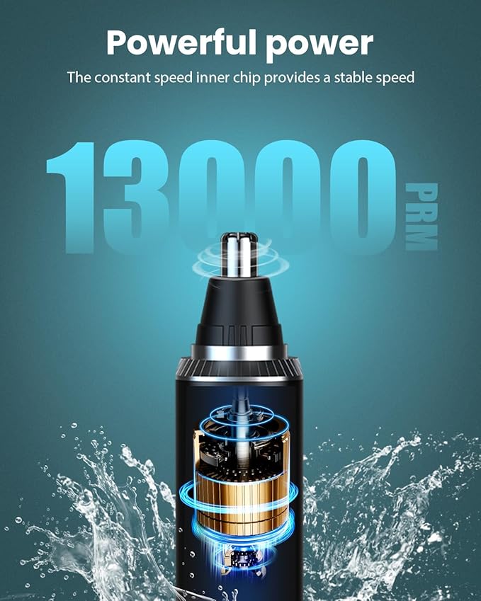 - Powerful & Painless Trimming: Equipped with an upgraded copper-core motor and 360° rotating dual-blade system, this trimmer offers efficient and painless trimming at 13,000 RPM, ensuring accurate hair removal without pulling or damaging hair