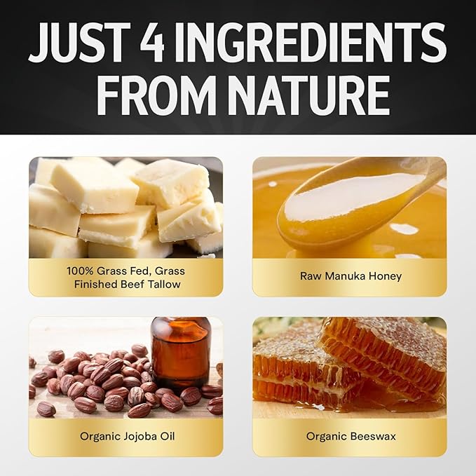 - Natural Ingredients: Benefit from an organic beef tallow moisturizer; free from synthetic additives and perfect for sensitive skin