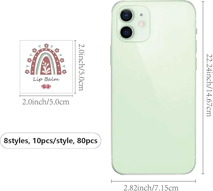 - SIZE: square custom lip balm diy label sticker about 1.96×1.96inch (5x5cm), 8 styles, 10pcs/style, 80pcs/set.