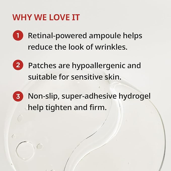 - [INTENSIVE UNDER EYE CARE] These Retinal-powered, ultra-firming under eye patches help reduce the look of wrinkles, fine lines, dark circles, and puffiness by tightening, brightening, and smoothing the skin around the eyes.