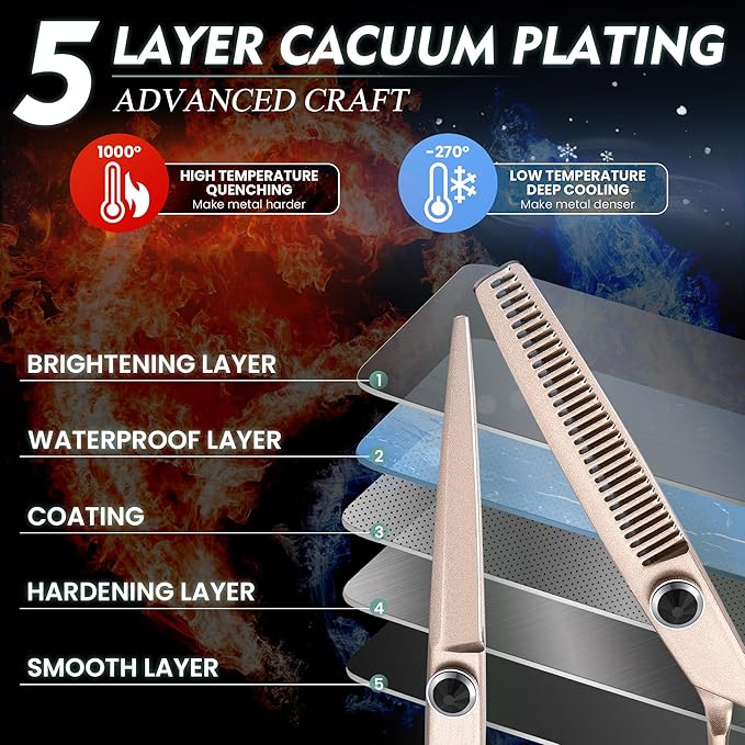 - ULTRA SHARP & DURABLE - The hair cutting shears set are made of premium Japanese 440C stainless steel. The super sharp blades with Convex edge, Hollow-ground are handmade by experienced craftsmen to ensure high sharpness and superior durability. The professional hair thinning shear is with 30 teeth and gives 20-25% thinning rate, it can thinning hair effortlessly without leaving marks or damaging hair.