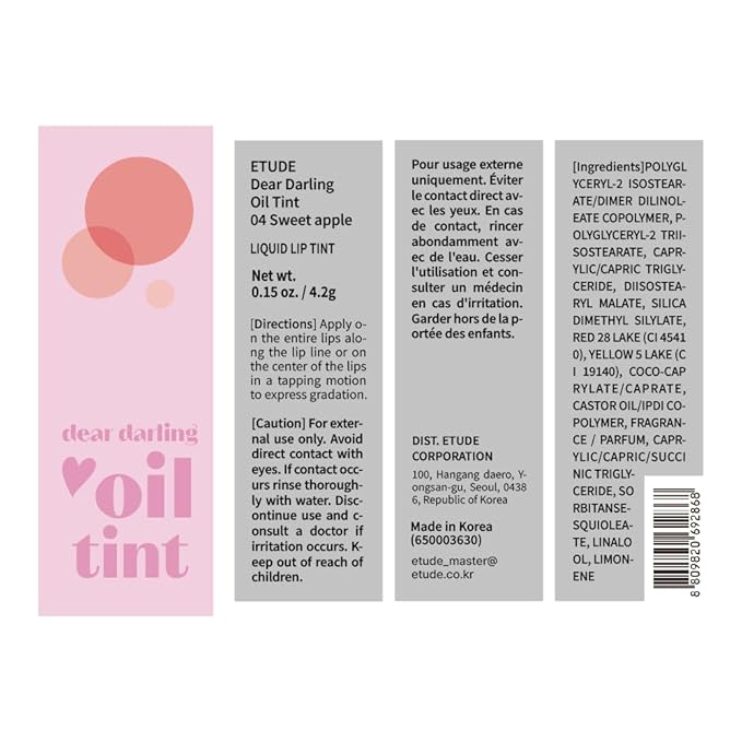 ETUDE Dear Darling Oil Tint #4 Sweet Apple Lip 2g