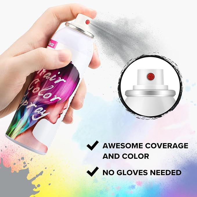 - Super Easy to Use - Just Just Spray It On! Dry and style hair, then spray the hair color on hair. Suggest spraying somewhere like outside, this would be fun for a day. No gloves needed, much more convenient than the hair color waxes. Also, this scalp-friendly formula helps to cleanse, condition, and make hair look fuller and shinier. Plus, its compact size makes it easy to carry anywhere