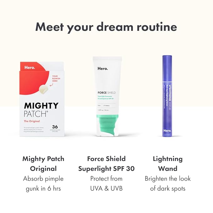 Hero Cosmetics Force Shield Superlight Sunscreen SPF 30 - Everyday SPF 30 for Acne-Prone Skin with Zinc Oxide, Green Surge, and Extremolytes - Fragrance Free and Reef Safe (50 ml)