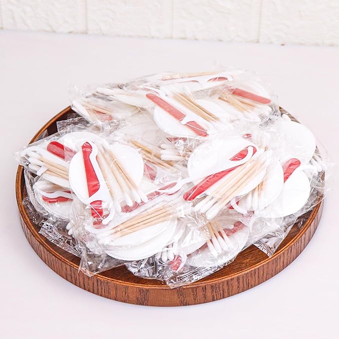 • SET INCLUDES: hotel vanity comes in a pack of 200, each pack contains 2 high quality cotton pads, 4 cotton swabs, 1 dental floss and a nail file. hotel supplies can meet your daily usage needs.