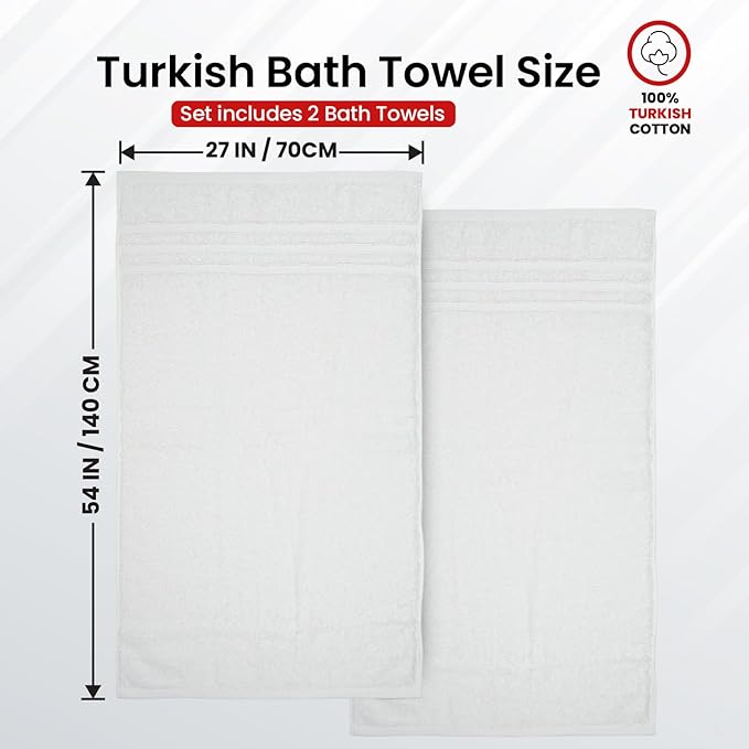 - SET OF 2 BATH TOWELS - The set contains 2 premium Turkish bathroom towels measuring 27 by 54 inches each. These are truly luxurious towels come in a variety of beautiful colors to complement with any home, dorm or hotel bathroom.