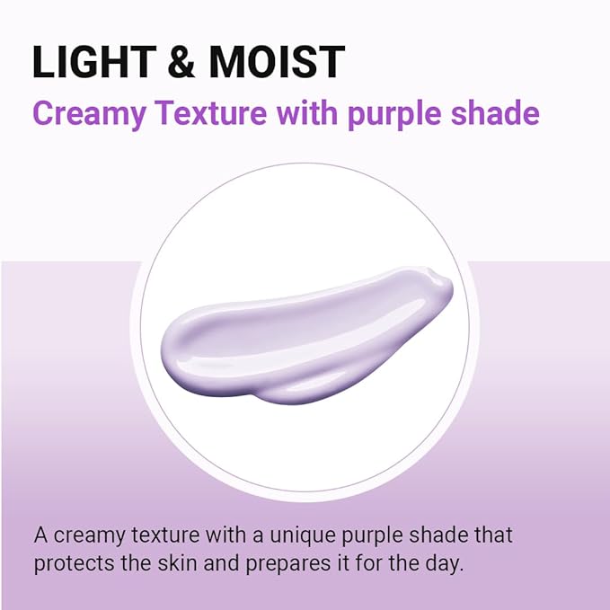 - ☑️ TEXTURE: A creamy texture with a unique purple shade that protects the skin and prepares it for the day
