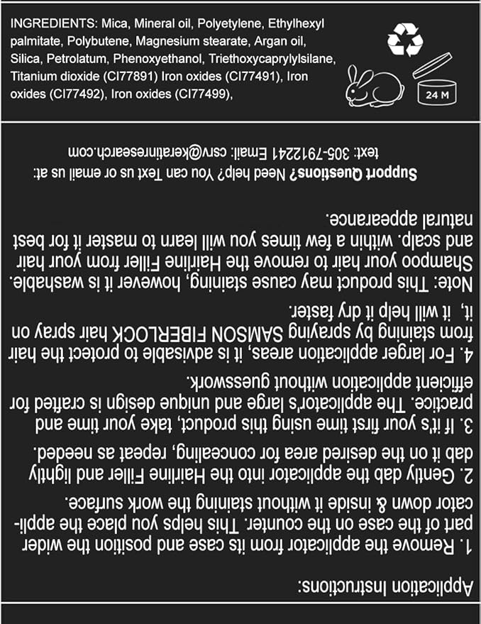- ROOT CONCEALER- Keratin Research Hairline Filler, a Premium Root Cover Up, is your secret weapon for at home or on-the-go. Camouflage roots and grays instantly, giving you full great looking hair! The Cover Up Powder also conceals thinning hair and hair loss, for an instant look of healthy volume. Packaging includes a large mirror and a great mushroom applicator. Root touch up powder is resistant to rain, sweat, and wind.