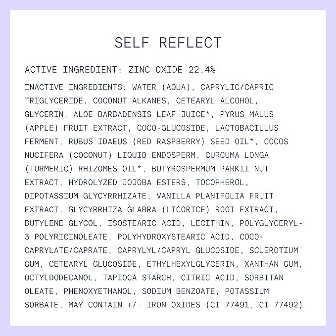 - KEY INGREDIENTS - Self-Reflect is made with high-quality, high-performance ingredients. Non-nano zinc oxide protects from UVA/UVB rays while being gentle on the skin. Turmeric feeds the skin with antioxidants and helps soothe, protect, and improve the appearance of damaged skin overtime. Self Reflect contains Kinbiome, Kinship’s patented plant-based pre-probiotic technology that supports clear skin and a strong skin barrier.