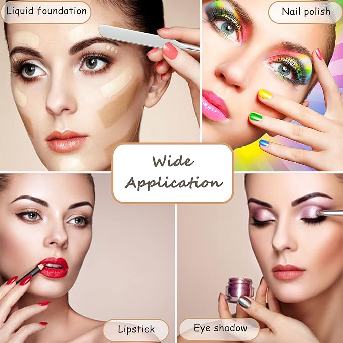 - 5.đ¨ăWide ApplicationăThe makeup spatula Korean is suitable for blending foundation, lipstick, eye shadow, nail art paint, gel, nail polish, pigment, eyelash glue, etc. Suitable for beginners or professional makeup artists.