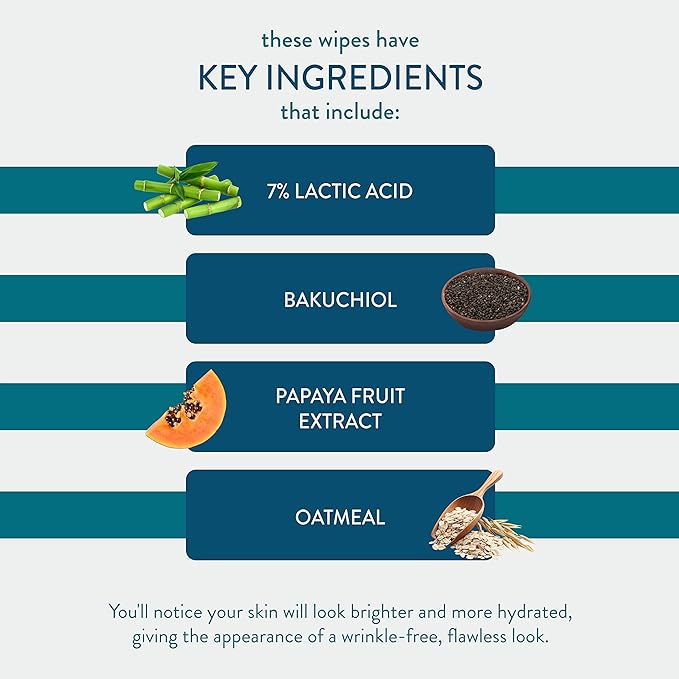 - GENTLE PEELING SOLUTION: Each face-peel pad is infused with soothing ingredients to nourish all skin types. The papaya fruit extract and oatmeal work to remove dead skin and boost hydration, while the Bakuchiol helps reveal a fresh, even complexion.
