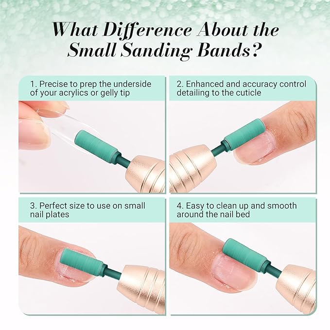 - Precise Nail Shaping: MelodySusie small sanding bands and small mandrel bits are designed for precise and detailed nail shaping, and provide optimal finesse when preparing the underside of gel. Whether you need to file the edges, remove excess length, or shape the surface of the nails, this set provides the necessary precision and control.