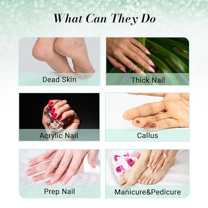 - Various Grit Options: 120# helps you to prep the nail quickly, file the nail sidewalk, shape, and smooth. 180# comes with a smooth surface and it will perfect on the natural nail and cuticle with your file's low speed.