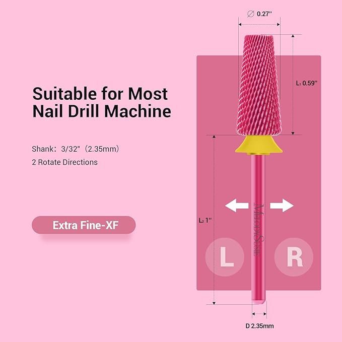 - Professional Nail Drill Bits: Made of the hardest YG6X carbide tungsten material, this high-precision machining nail bit comes with excellent heat dissipation, low vibration, low noise, and hard-wearing features. Fast to remove acrylic nails, dip powder, polygel, and hard gel nails.