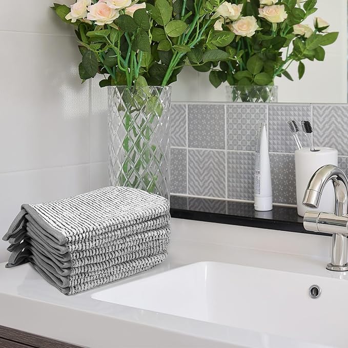 - Color : 8 Grey Striped Washcloths