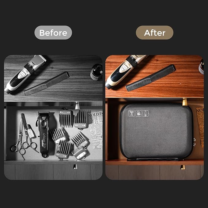 - Dimensions: 10.24*7.48*3.54 inches. Compatible with TPOB/Hatteker/Brightup/ Andis/ Oster/ EHJYO/ Suttik/ Karrte and most hair clippers and its scissors, combs, charging cables, and other accessories