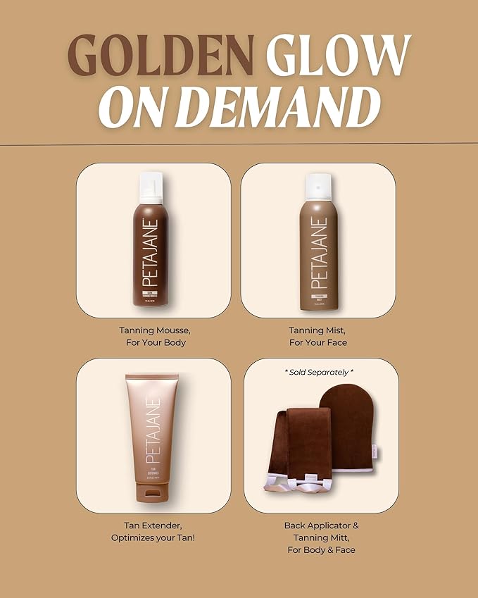 - For All Skin Types: Safe and effective for use on all skin types, the Peta Jane Sunless Tan Applicator Mitt ensures a natural-looking tan without exposure to harmful UV rays, making it an essential part of a healthy, skin-friendly beauty routine.