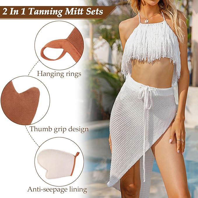- [Travel-Friendly] This self tanning mitt and back applicator set is compact and easy to carry, making it perfect for on-the-go use or travel. The tanning mitt and lotion applicator is perfect for ensuring even coverage on hard-to-reach areas.