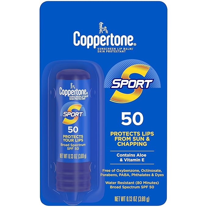 - Includes one 0.13 ounce tube of Coppertone Sport SPF 50 Sunscreen Lip Balm